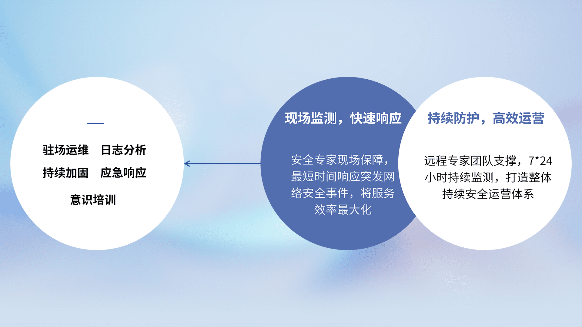 针对客户行业特性,,,提供专属的一站式安全管理服务,,帮助客户全面感知网络空间威胁,,通过安全专家的线上、、线下防护支持,,,实现风险闭环,,,,将安全保障常态化,,,为客户打造常态化安全运维运营服务。。。